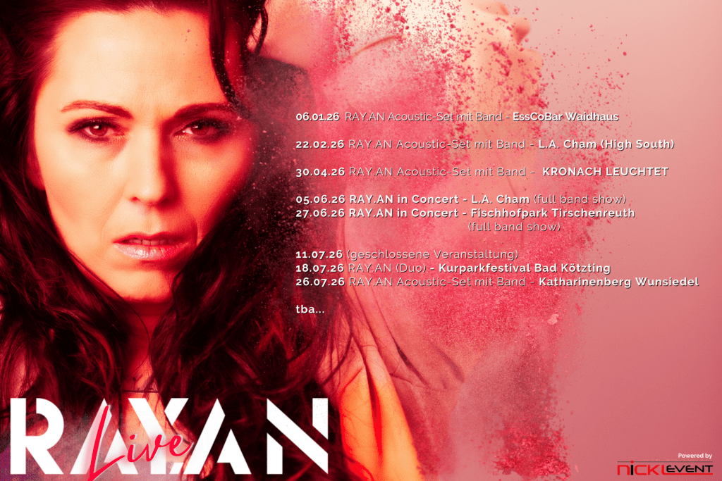 RAY.AN vereint kraftvollen Rock, Country-Vibes und authentische Texte zu einem einzigartigen Sound, der Empowerment, Emotion und Geschichten, die nur das Leben schreiben kann, transportiert. Mit ihrer vielseitigen, erdigen Stimme trifft sie mitten ins Herz – mal laut, mal leise, mal sanft, mal direkt. Für Fans von Shania Twain, Ella Langley oder Laney Wilson ist sie mehr als ein Geheimtipp.