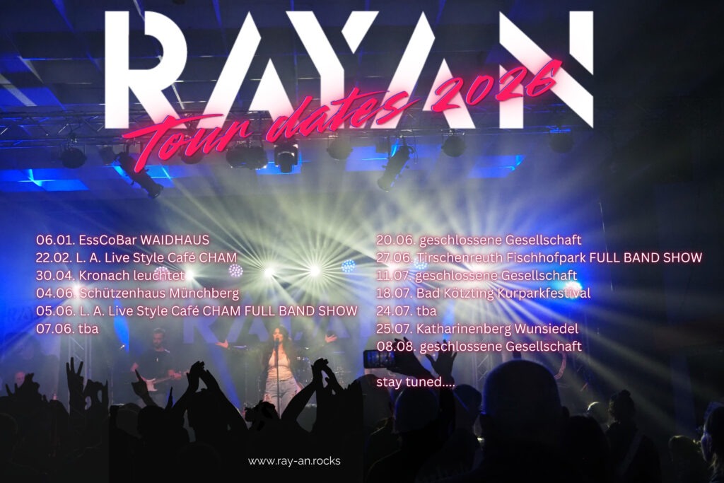 RAY.ANs Sound lebt von souligen Country-Gitarren, starken Chören, groovenden Basslines und einem ganz eigenen Drive – perfekt für den Moment, in dem man die High Heels nochmal rausholt und das Leben feiert.